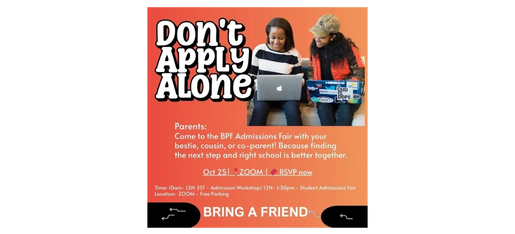 Monthly BPF Parent Meetings & WebinarsBetween the fairs, we keep the momentum going with parent meetings, Q&A sessions, and insider sessions to help you stay on track. Topics include: